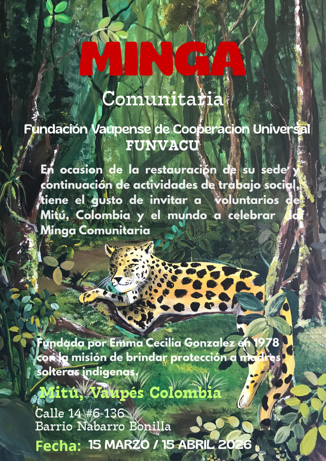 Estamos organizando una Minga Comunitaria en alianza con la Fundación Vaupense de Cooperación Universal, con el objetivo de fortalecer procesos sociales, culturales y ambientales en el territorio amazónico.